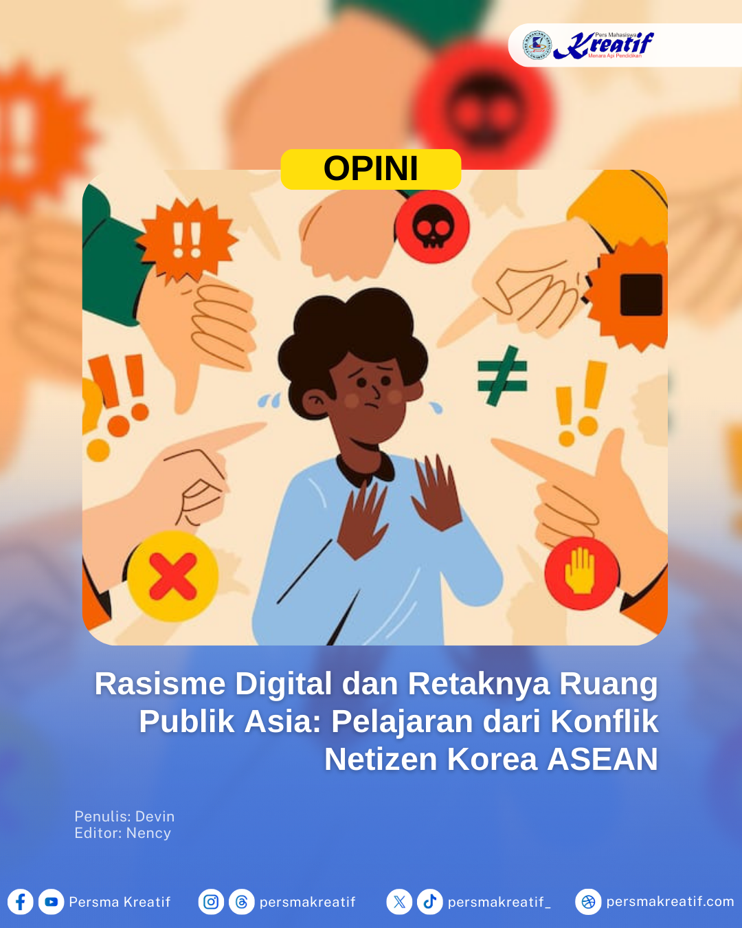 Medan, Persma Kreatif — Gelombang komentar rasis yang muncul di media sosial dalam beberapa hari terakhir, menyusul konflik antara sebagian...