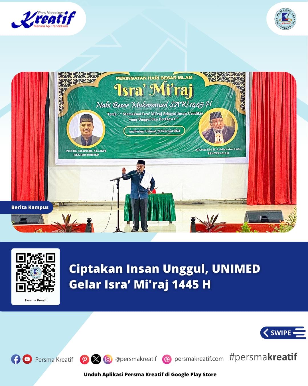 Ciptakan Insan Unggul, UNIMED Gelar Isra’ Mi’raj 1445 H