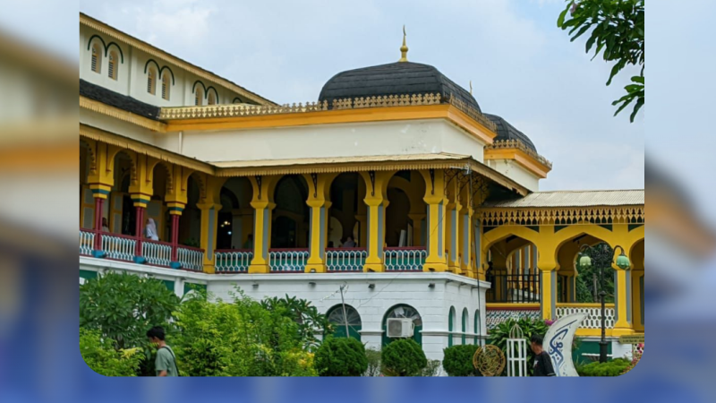 Bangunan tersebut adalah Istana Maimun, salah satu ikon bersejarah di Medan. Istana ini menjadi simbol kejayaan dan warisan budaya Kesultanan Deli yang dibangun pada tahun 1888 dan selesai pada 1891 di bawah pemerintahan Sultan Ma’mun Al Rasyid. Berlokasi di Jalan Brigadir Jenderal Katamso, bangunan ini memukau dengan perpaduan arsitektur Melayu, Islam, dan Eropa yang berpadu harmonis. Warna kuning yang mendominasi bangunan melambangkan kebesaran dalam budaya Melayu.