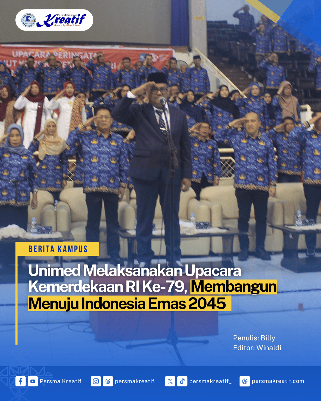 Medan, Persma Kreatif — Dalam rangka memperingati hari kemerdekaan Republik Indonesia yang ke-79 tahun, Universitas Negeri Medan (Unimed) melaksanakan kemerdekaan RI di gedung serbaguna Unimed pada hari Sabtu, (17/08).